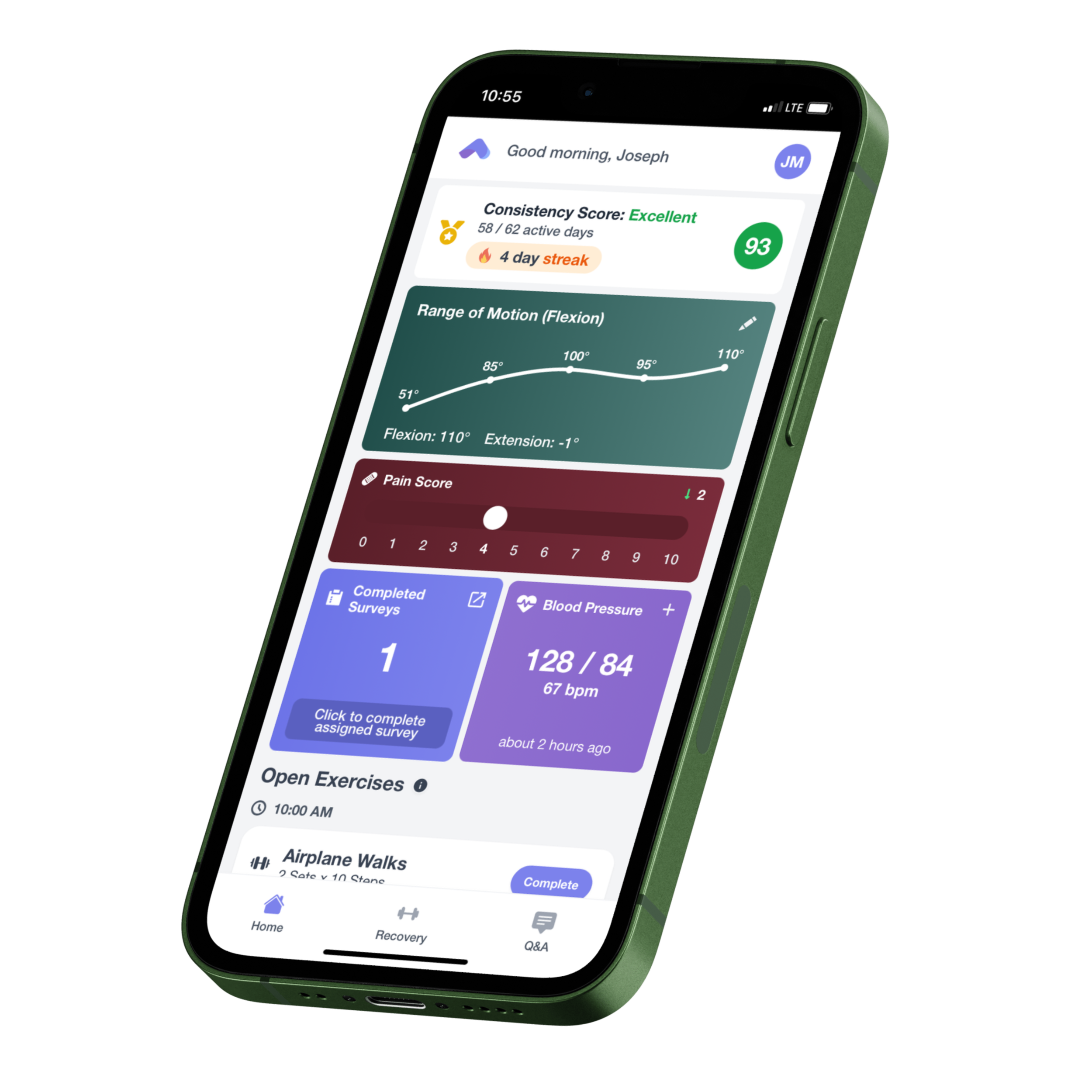 Orva turns PROs from an administrative headache into a meaningful part of care. Patients are prompted inside the app at the right time, which drives three times more completions without staff intervention. Providers see objective measures alongside patient-reported progress, giving a more complete view of recovery and helping clinics demonstrate value to payers.
