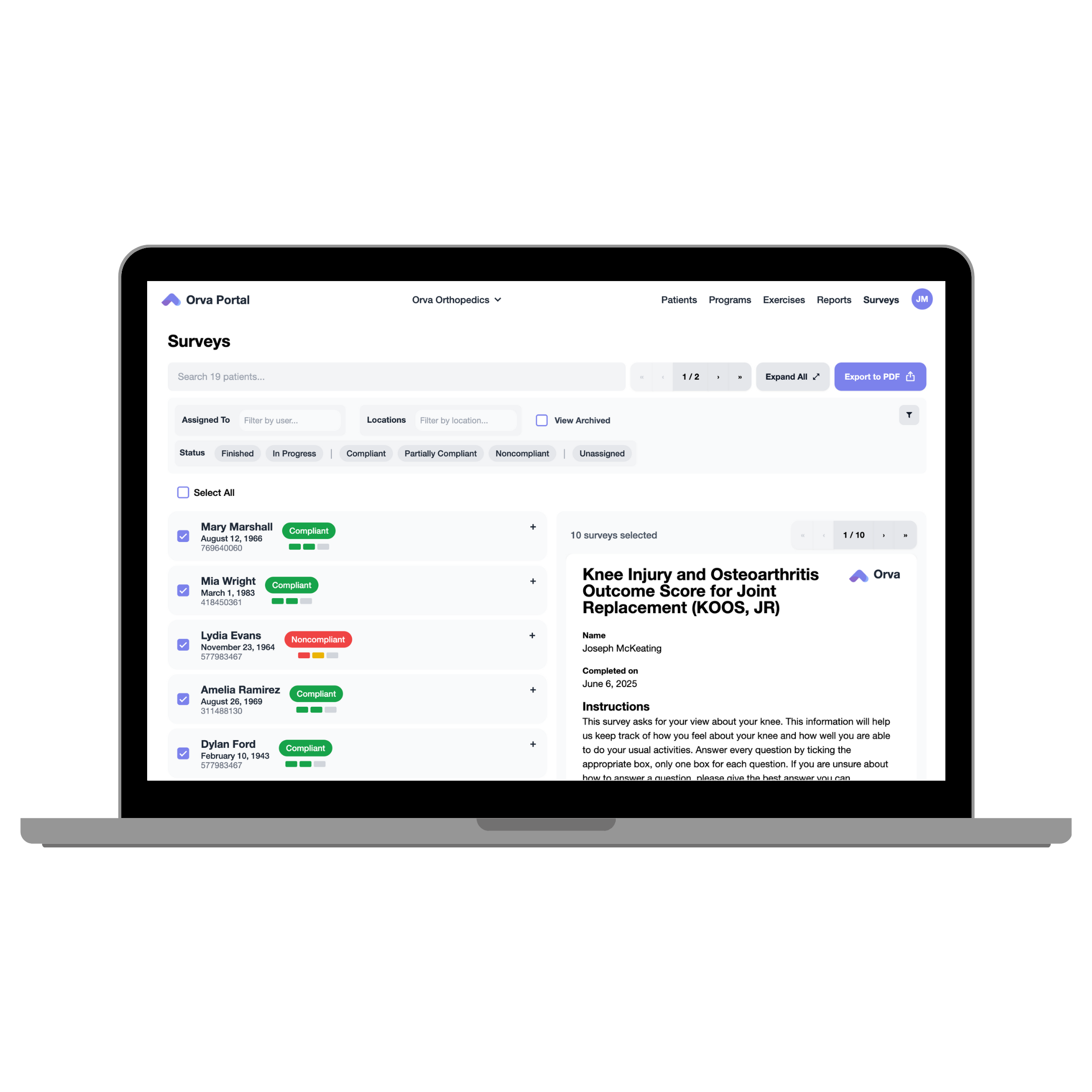 Patient Engagement - Patients receive assessments via the Orva app or email and complete them on any device.